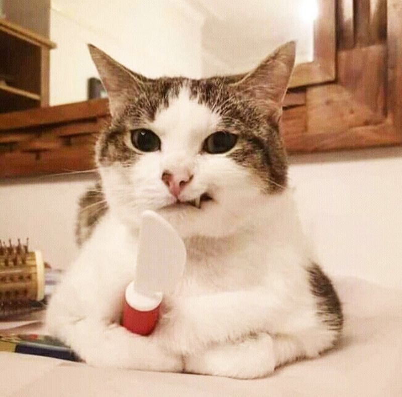 Meme mèo cầm dao